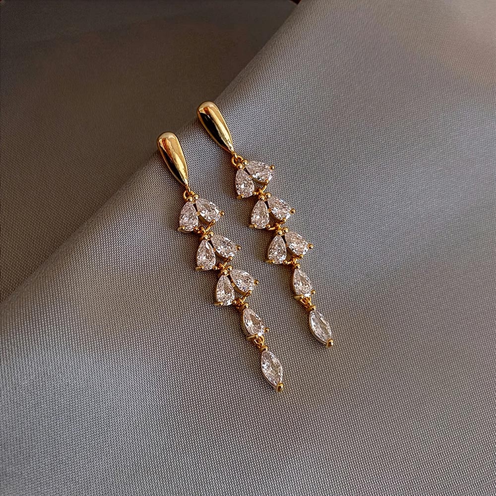 Crafted from high-quality zinc alloy and plated in radiant gold, these earrings bring together durability and refined beauty. The precision-cut cubic zirconia stones offer a dazzling finish that elevates any look, from an elegant evening ensemble to a chic everyday style.